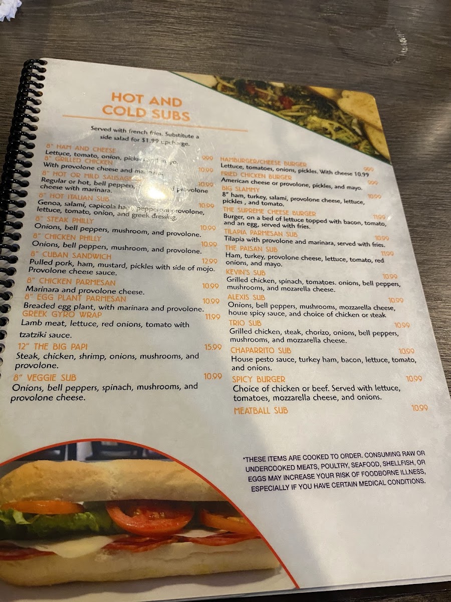 mojo marinated pulled pork, with ham ,mustard, pickles, provolone cheese, on a 8 inch hoagie roll,