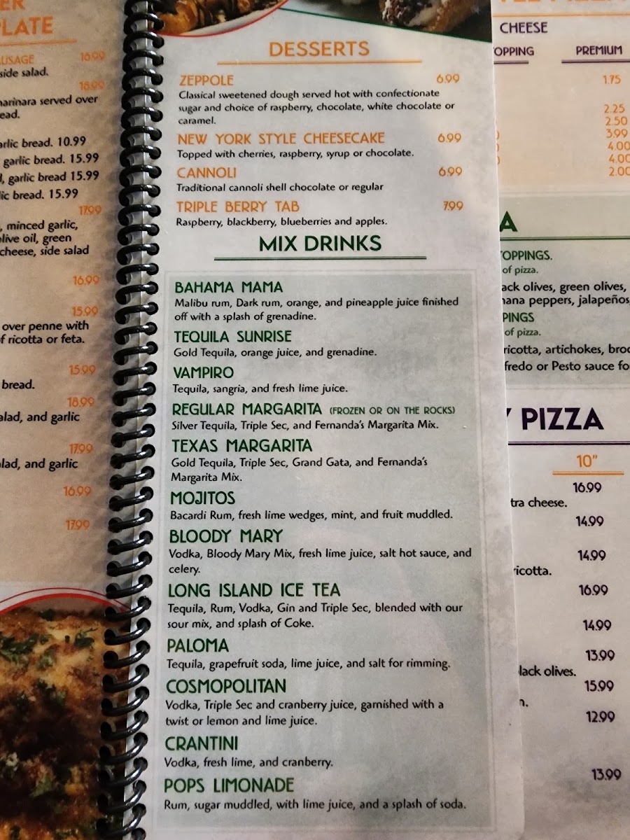 Your choice of one topping. mozzarella cheese, ricotta with marinara sauce.